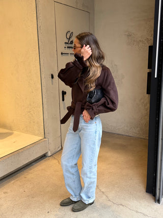 Introducing Noé, the latest statement piece from Revived. Made from high-end quality wool, this piece exudes effortless sophistication. The back features our signature monogram deadstock fabric, bringing a bold contrast to the clean, structured front. With a belt to define your waist, Noé is the perfect blend of timeless style and modern edge.
